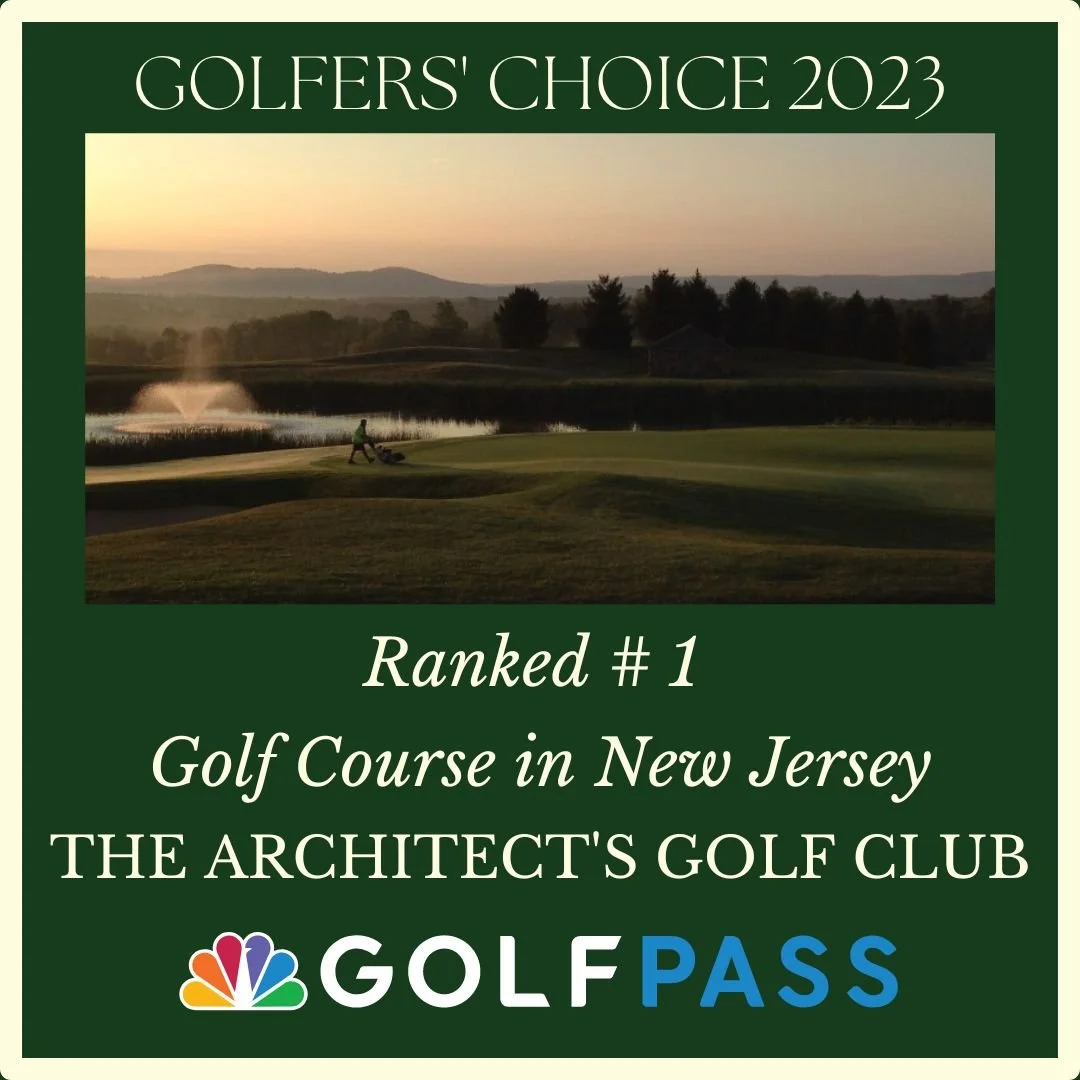 We are proud to share that The Architects Golf Club has been ranked the #1 Golf Course in New Jersey by Golfers' Choice 2023 as featured on the NBC Golf Pass website.